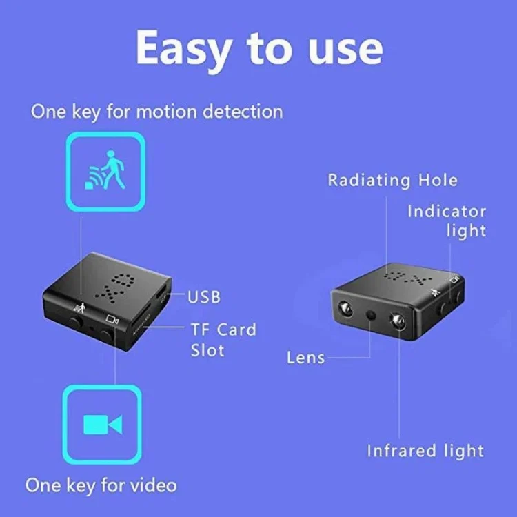 XD Camera 1080p HD Video Smart IR-CUT Infrared Night Vision Sports Camera