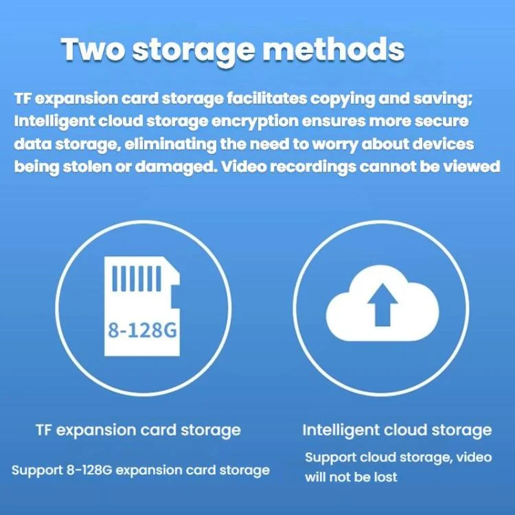 9. TF expansion card storage for convenient copying and saving, intelligent cloud storage with encrypted data storage for enhanced security, eliminating concerns about lost or damaged devices preventing video access