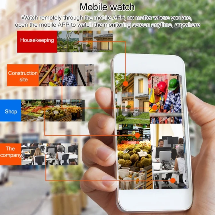 4. Remote viewing on mobile phones in different places, remote viewing through the mobile APP, no matter where you are, open the mobile APP to watch the monitoring screen anytime, anywhere
