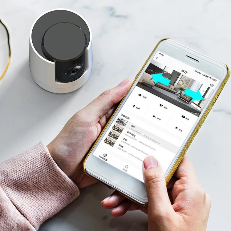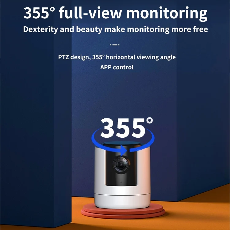 1. 355-degree pan-tilt panoramic viewing angle, mini compact and more free care: adopts the pan-tilt design, 355-degree horizontal viewing angle. APP operation, see where to point.