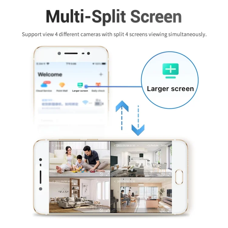 6. Support cloud storage, up to 128G memory card, local recording support continuous recording, support custom recording time period (alarm recording recording 7s)