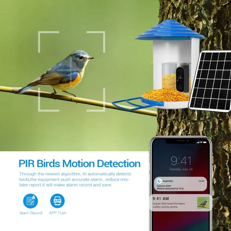 13. PIR motion detection, with bird feeder, especially for birds, APP alarm push