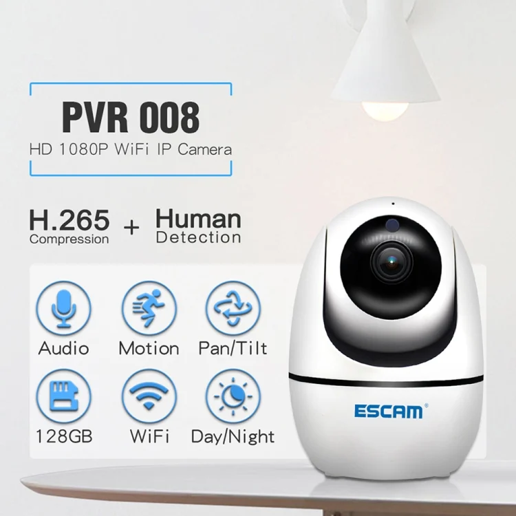 ESCAM PVR008 HD 1080P WiFi IP Camera, Support Motion Detection / Night Vision, IR Distance: 10m, AU Plug