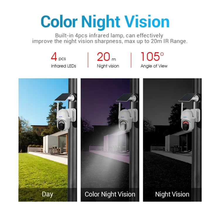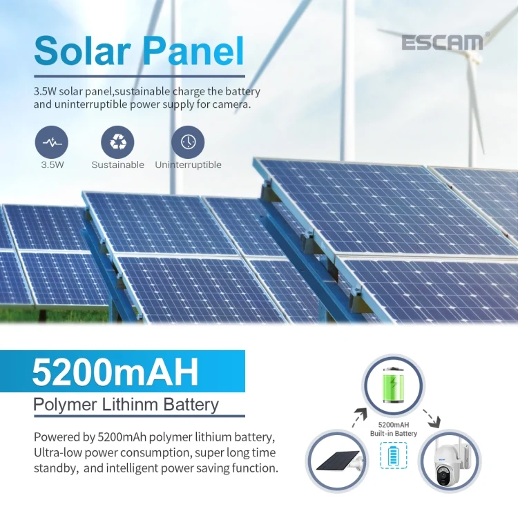 ESCAM QF103 3MP Cloud Storage PT WIFI PIR Alarm IP Camera with Solar Panel Battery Support Full Color Night Vision & Two Way Audio