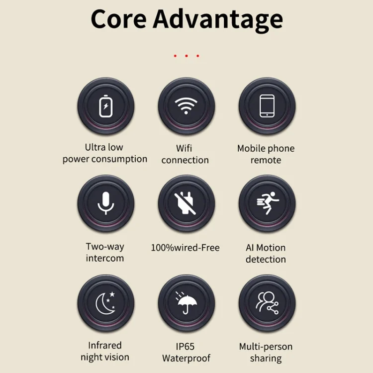 4. Built-in infrared LED+PIR sensor, support infrared night vision, clear and visible pictures at night, PIR motion detection, human detection, APP remote active wake-up.