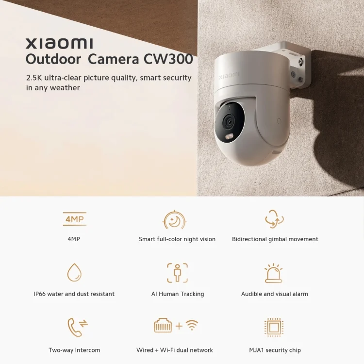 Original Xiaomi CW300 4MP Outdoor Camera IP66 Waterproof Full Color Night Vision WiFi Camera, US Plug