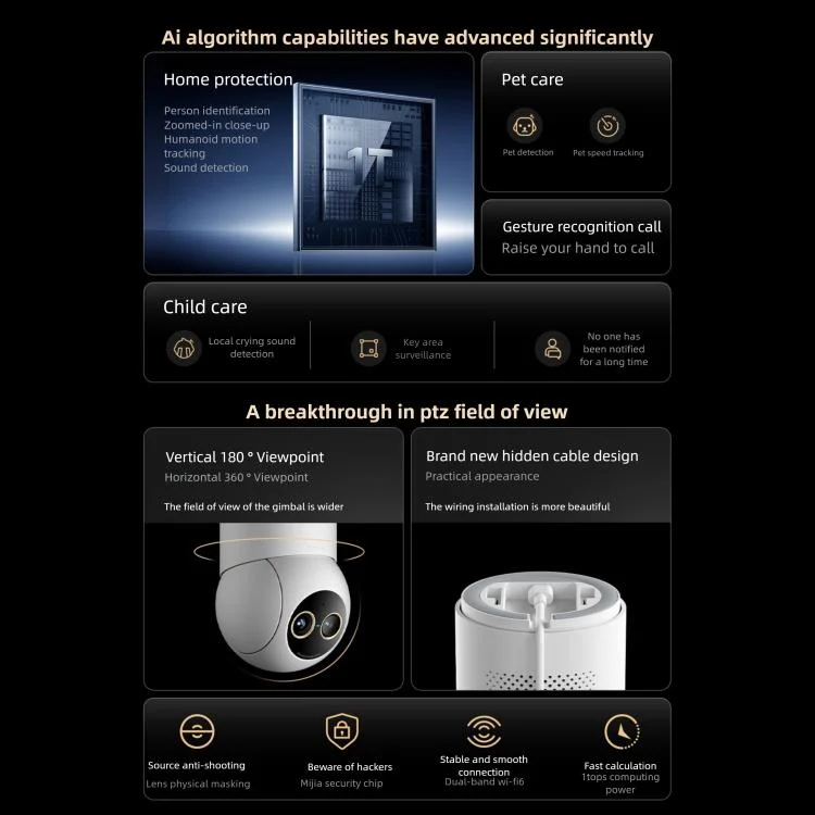 5. Dual-Band Wi-Fi 6 & Secure Transmission: Support both 2.4GHz and 5GHz networks with the Wi-Fi 6 standard for faster, more reliable connectivity. Includes a financial-grade Mijia 1T security chip for tamper-resistant protection