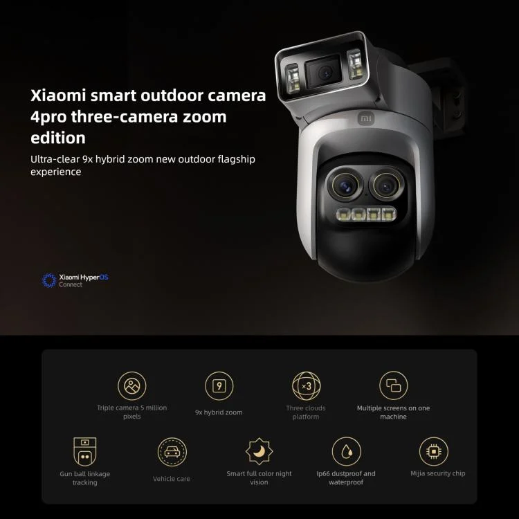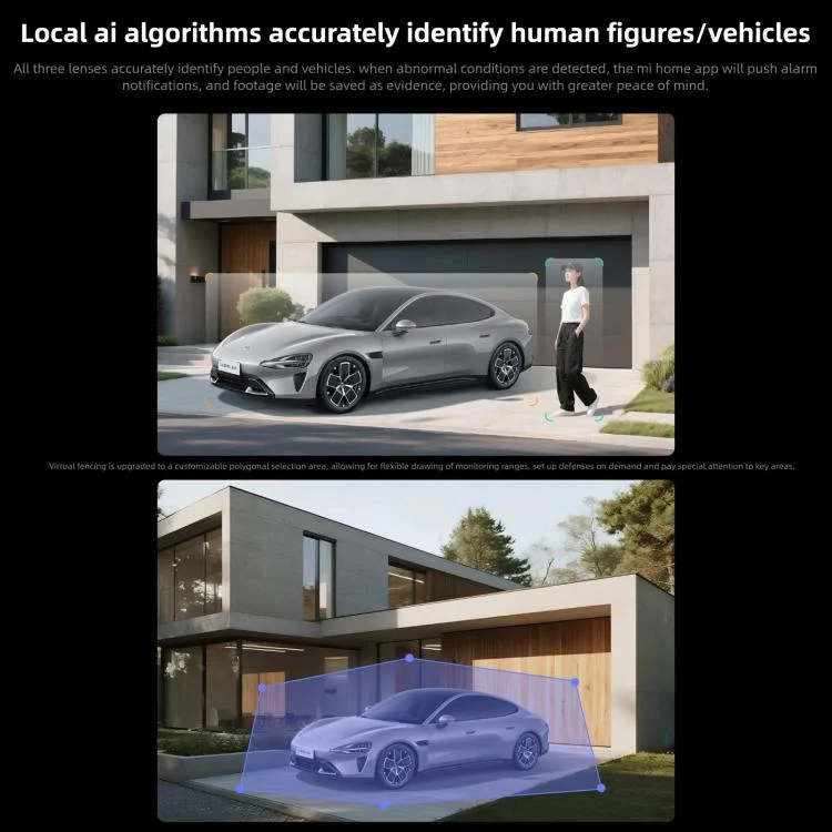 Original Xiaomi Outdoor Camera 4 Pro 3 Lens 9X Zoom 5MP Full Color Night Vision Sound Light Warning Security Camera
