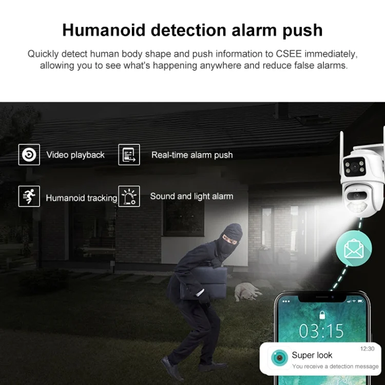 15. Supports two-way voice, cloud storage, humanoid detection, and gun-ball linkage
