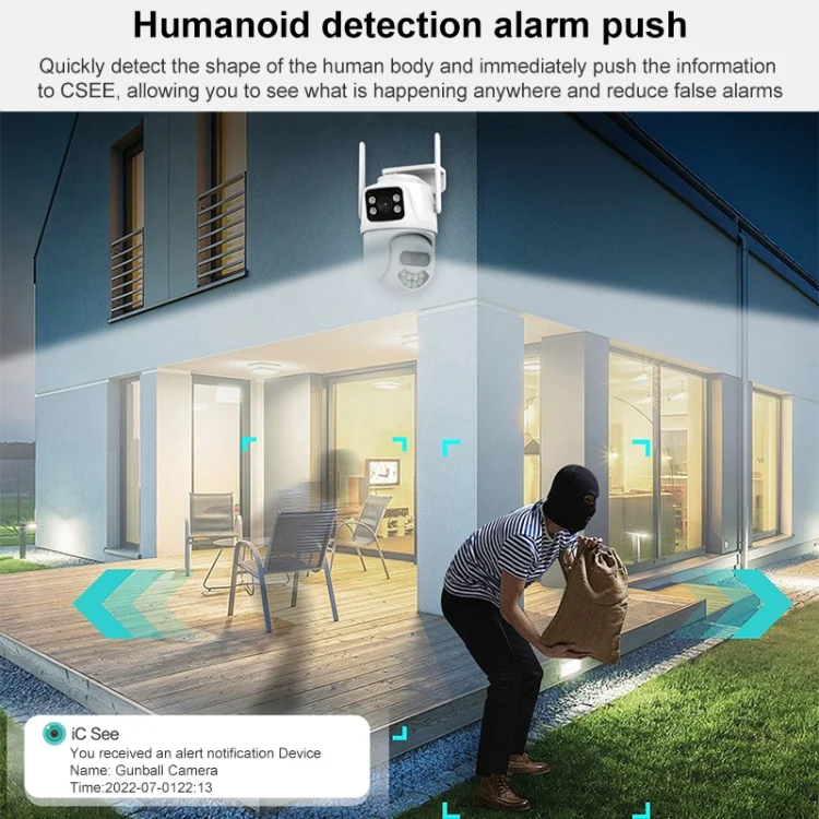 15. Supports two-way voice, cloud storage, humanoid detection, and gun-ball linkage