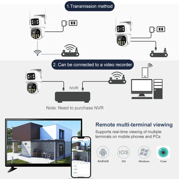 QX104 3MP WiFi Triple Camera Supports Human Face Recognition & AI Alarm