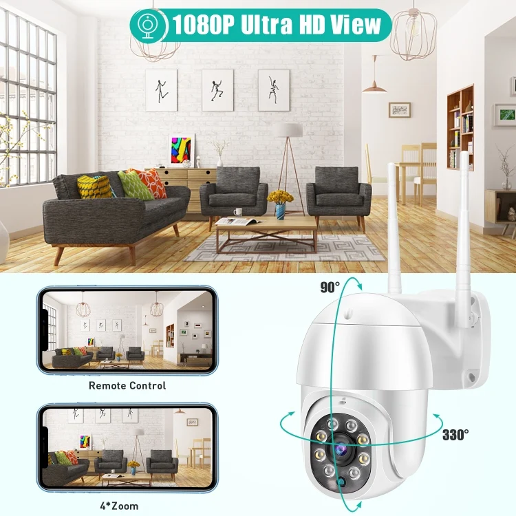 QX43-2 1080P 2.0MP Lens IP66 Waterproof PTZ Rotating WIFI Camera, Support Infrared Night Vision & Two-way Voice Intercom & Motion Detection & 128GB TF Card, AU Plug