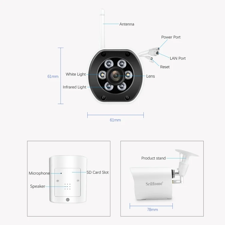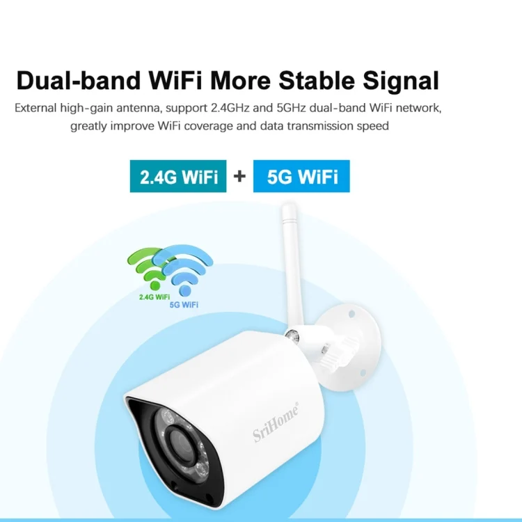 SriHome SH034 5.0MP Mini Dual 2.4 / 5G WiFi Outdoor Waterproof Video Surveillance Color Night Vision Security CCTV Cam