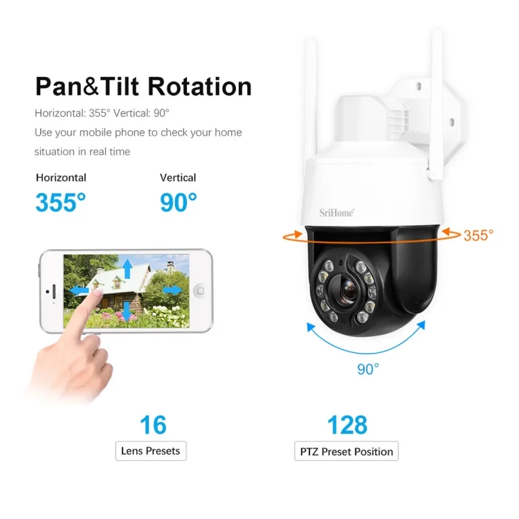 SriHome SH041 5.0MP 20X Optical Zoom 2.4G/5G WiFi Waterproof AI Auto Tracking H.265 Video Surveillance