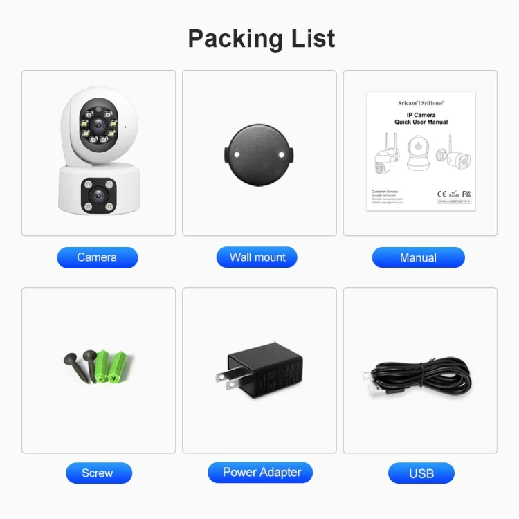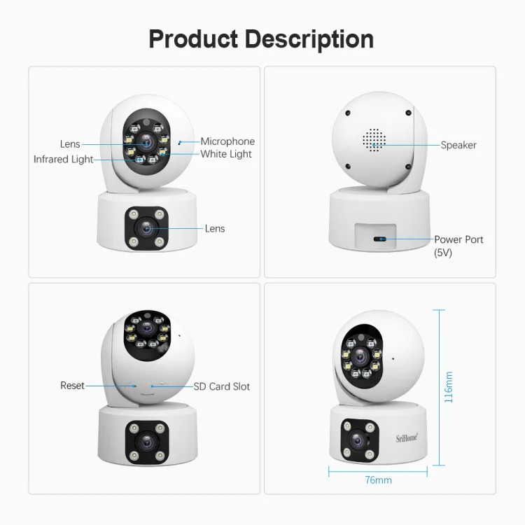 SriHome SH049 2MP + 2MP Humanoid Tracking Smart Night Vision Dual Lens HD IP Camera