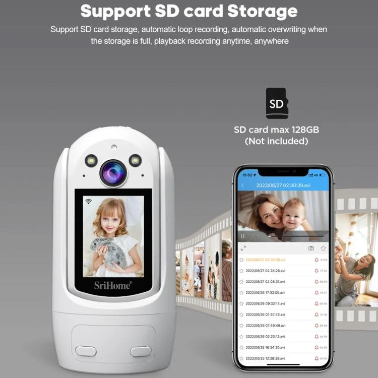 SriHome SH060 2MP 2.4 inch IPS Screen Smart IP Camera Supports Two-way Video Voice Call