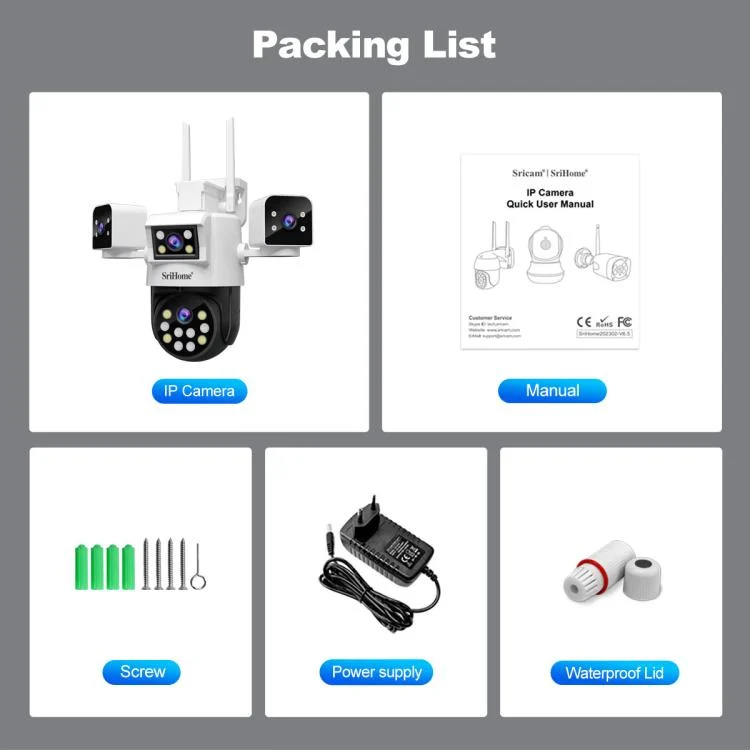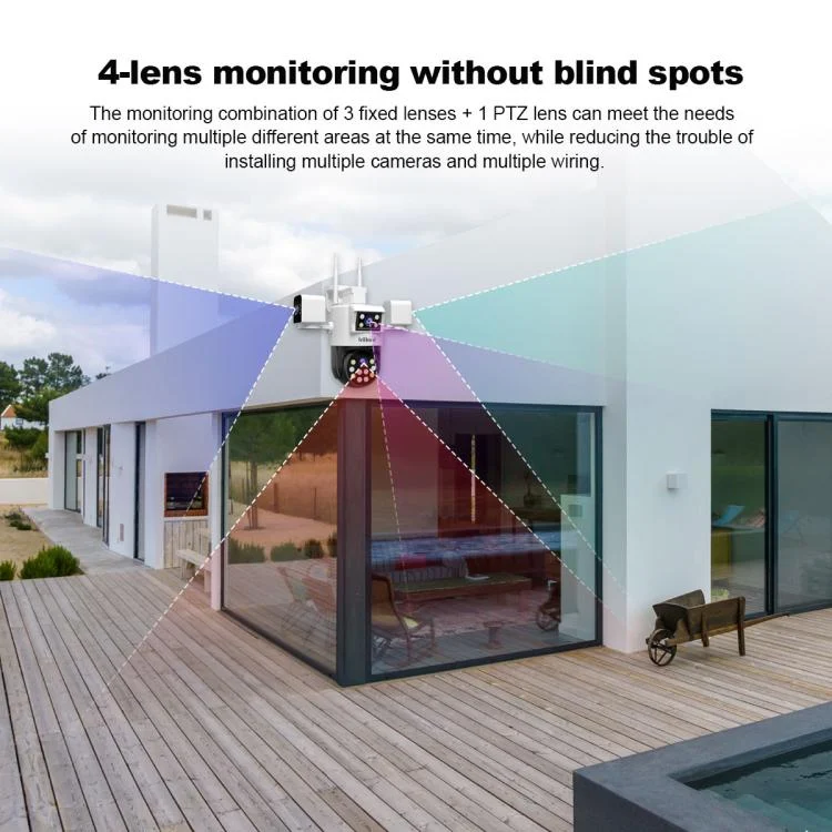 SriHome SH066 8MP HD Quad Lens Security Camera, Support Full Color Night Vision / Two-way Audio
