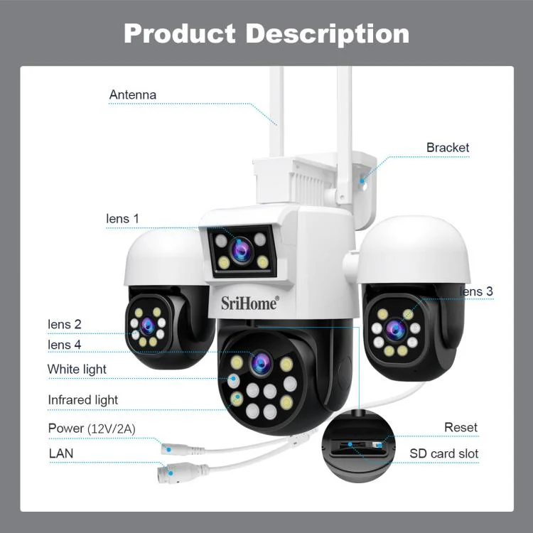 SriHome SH069 8MP 3X Digital Zoom HD Quad-lens Security Camera