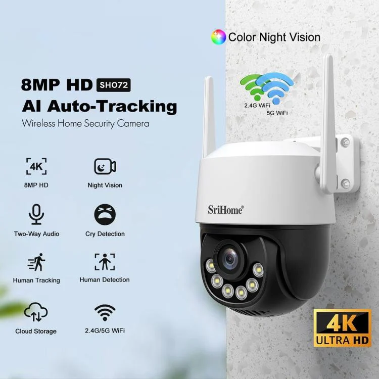 Srihome SH072 8MP Outdoor AI Auto-Tracking Wireless WiFi Security Camera