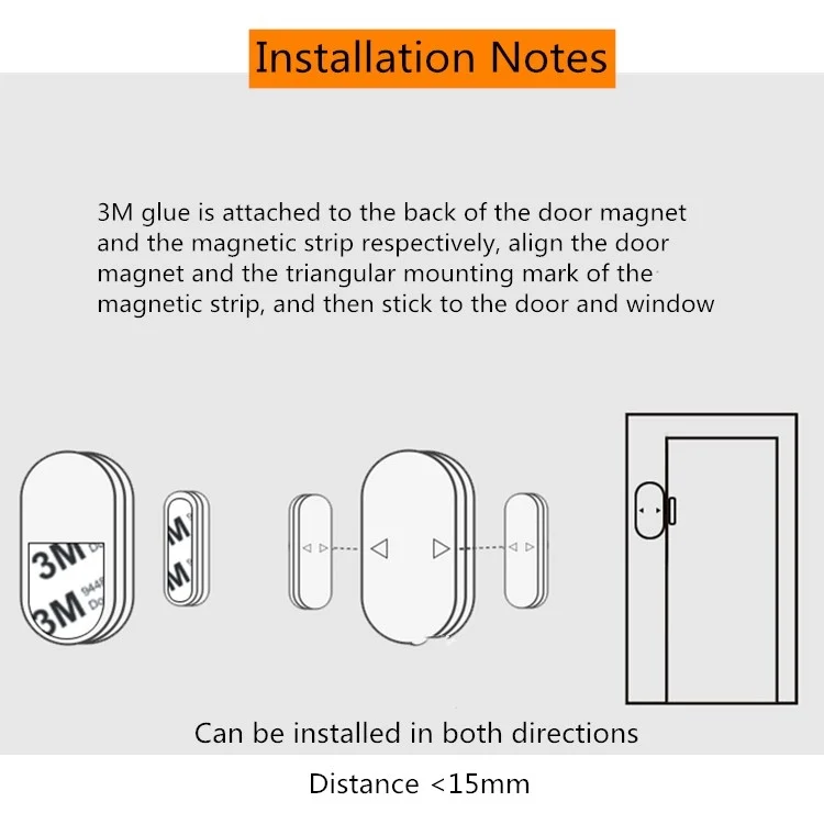 9. According to the triangle mounting marks of door sensor and magnetic stripe, it can be installed in left and right adjustment positions
