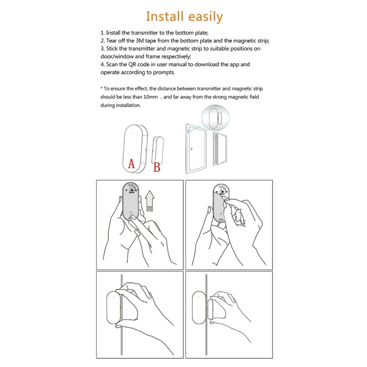 3. It is used to detect whether doors, windows and drawers have been illegally opened or moved. If the position of the main module and permanent magnet changes, the main module will send a warning message to the APP