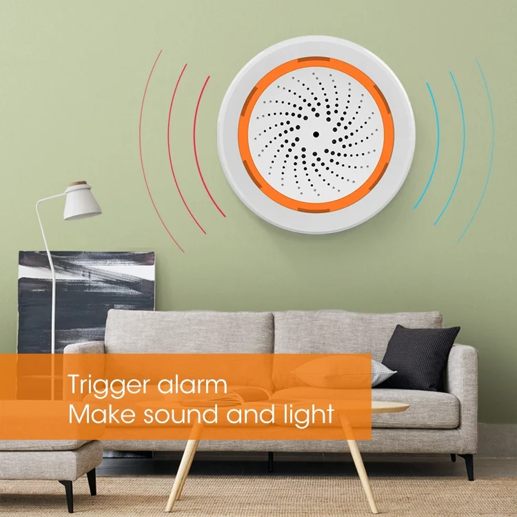 1. Function: trigger alarm, make sound and light, remote on/off via APP