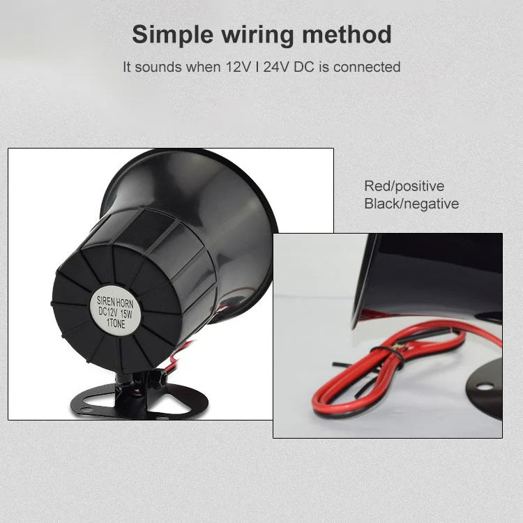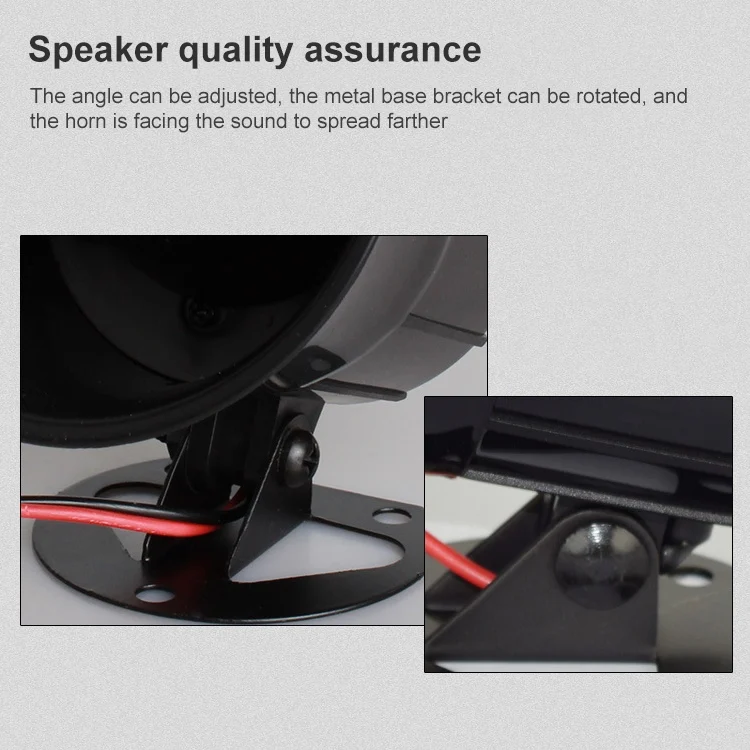 1. The product is equipped with a 12V / 115 dB speaker, high volume and double tone, can be worked with various alarm connection.
