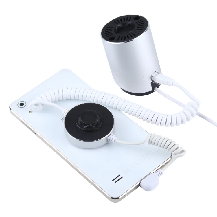 Aluminum Shell Cylindrical Display Stand Digital Magnetic Security System Burglar Alarm / Anti-theft Alarm Display Holder for Mobile Phones with Micro-USB Port