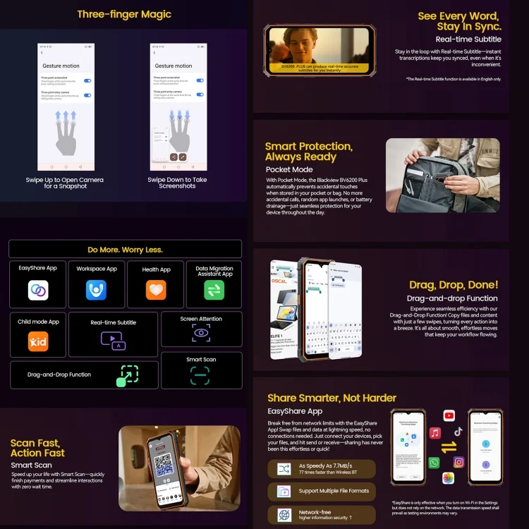 Blackview BV6200 Plus, 8GB+256GB, IP68/IP69K/MIL-STD-810H, 6.56 inch Android 14 Unisoc UMS9230 T606 Octa Core, Network: 4G, OTG, NFC