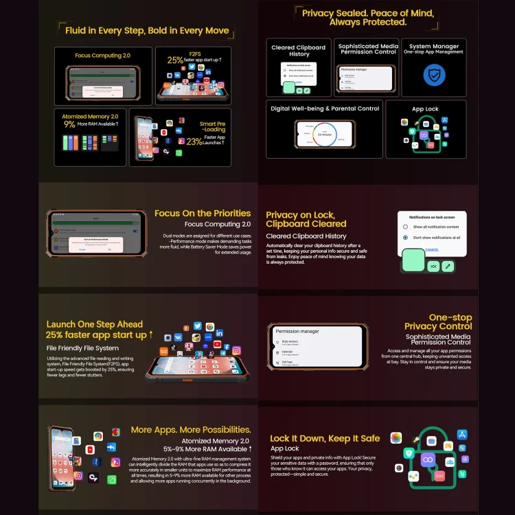 14. Protection: IP68/IP69K / MIL-STD-810H Waterproof Dustproof Shockproof