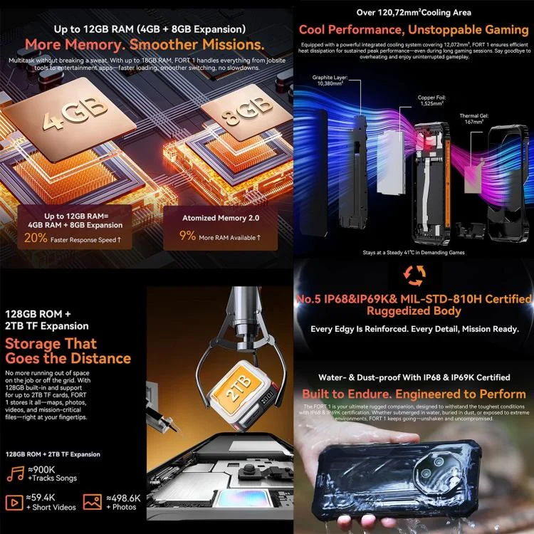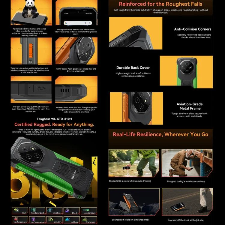 Blackview FORT 1, 6GB+256GB, 6.56 inch Android 15 Unisoc UMS9230E T615 Octa Core, Network: 4G, OTG, NFC