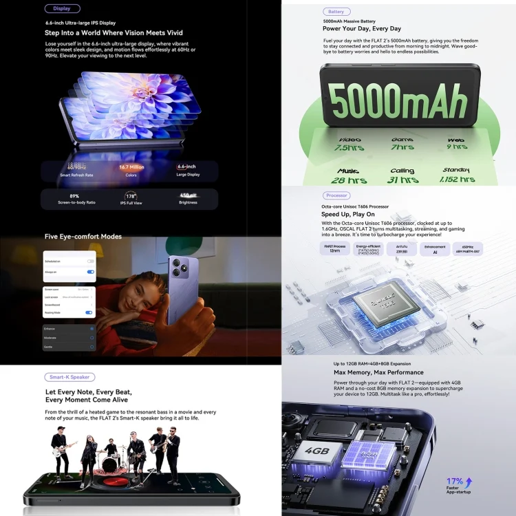 Blackview Oscal FLAT 2, 4GB+128GB, 6.6 inch Android 14 Unisoc T606 Octa Core, Network: 4G