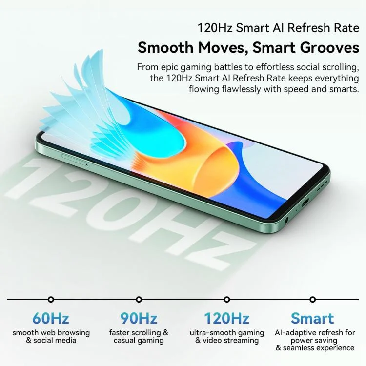 6. Display: 6.88-inch HD+IPS, 720×1640 Resolution, 120Hz Refresh Rate, 89.7%, 20.5:9