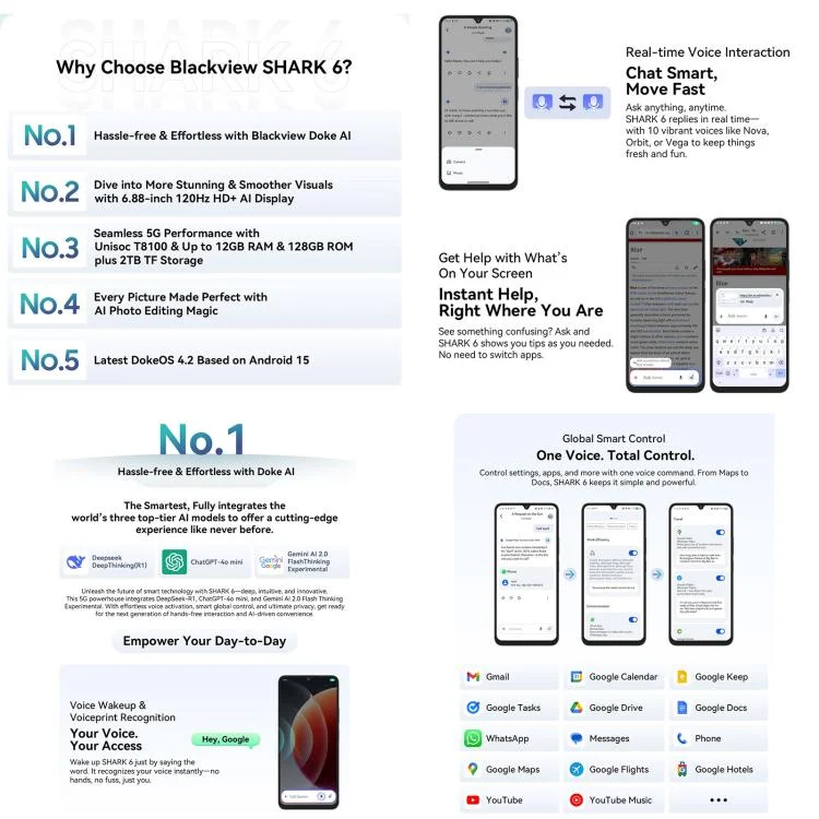 Blackview SHARK 6 5G, 4GB+128GB, 6.88 inch Android 15 Unisoc UMS9620 T8100 Octa Core, Network: 5G, NFC, OTG