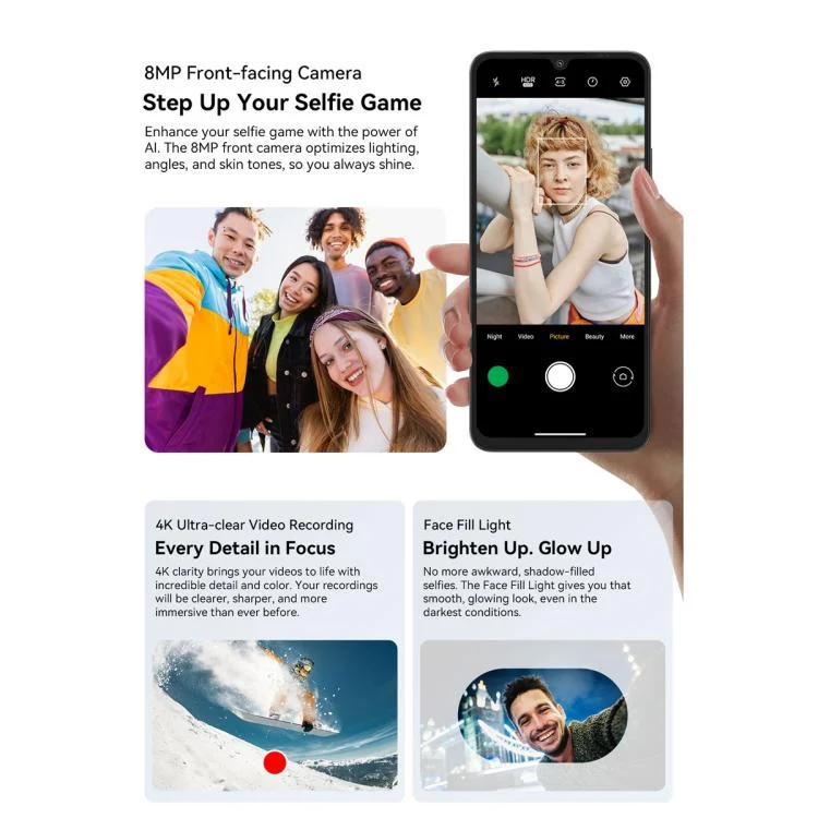 6. Display: 6.88-inch HD+IPS, 720×1640 Resolution, 120Hz Refresh Rate, 89.7%, 20.5:9