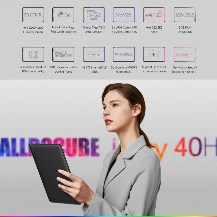 Android 10 UNISOC Tiger T618 Octa Core 2.0GHz, Support GPS & Bluetooth & Dual Band WiFi & Dual SIM
