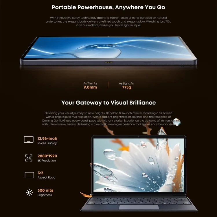 6. Display type: 12.96 inch G+FF, fully laminated LCD screen, 2880×1920 resolution, ratio 3:2