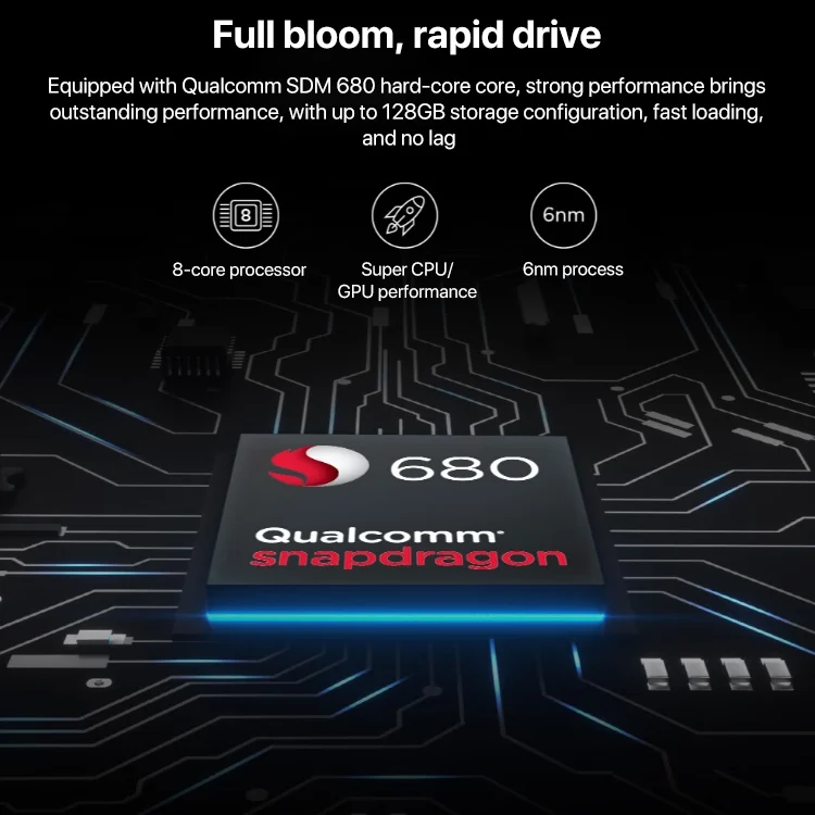 3. CPU: Qualcomm Snapdragon 695 8-core kryo 660 (2 x Gold 2.2GHz + 6 x Silver 1.8GHz)
