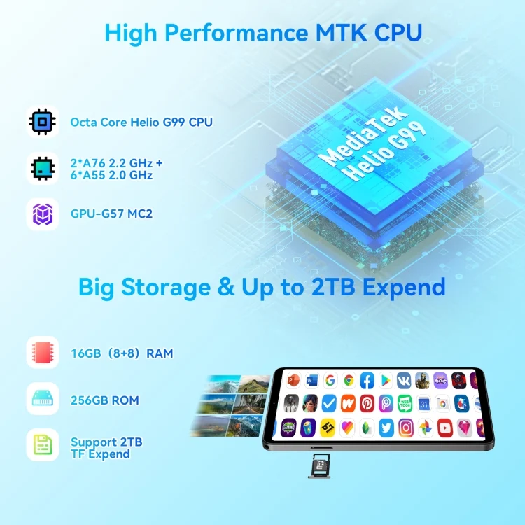 4. CPU: MediaTek MT6789 (Helio G99) Octa-core processor (2xA76 2.2GHz + 6xA55 2.0GHz)