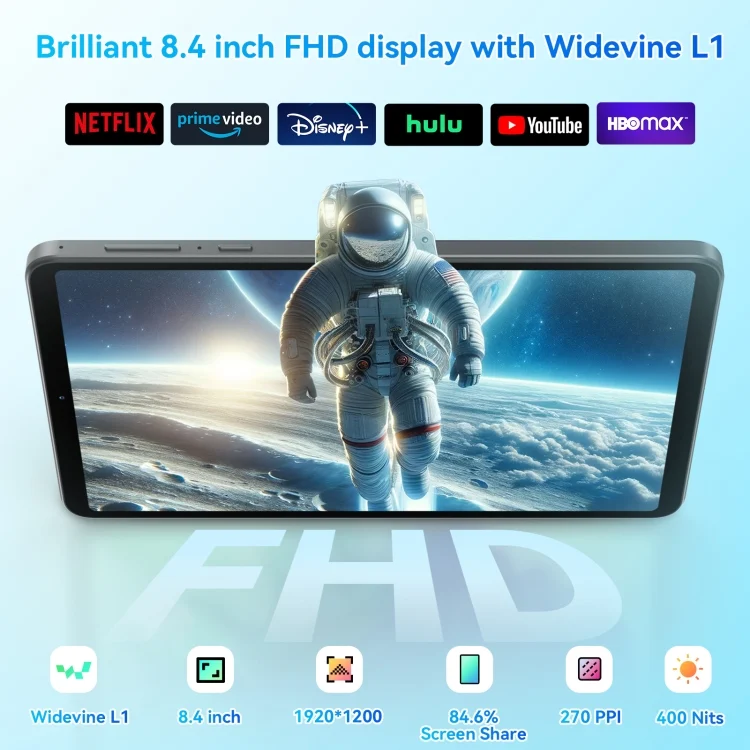 HEADWOLF Fpad5 Pro 4G LTE Tablet PC, 8.4 inch Android 14 MT6789 Octa Core Support Dual SIM, Global Version with Google Play