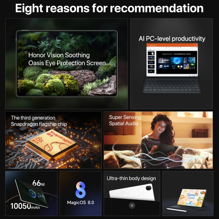 Honor MagicPad2 WiFi Tablet PC, 12.3 inch MagicOS 8.0.1 Qualcomm Snapdragon 8s Gen 3 Octa Core