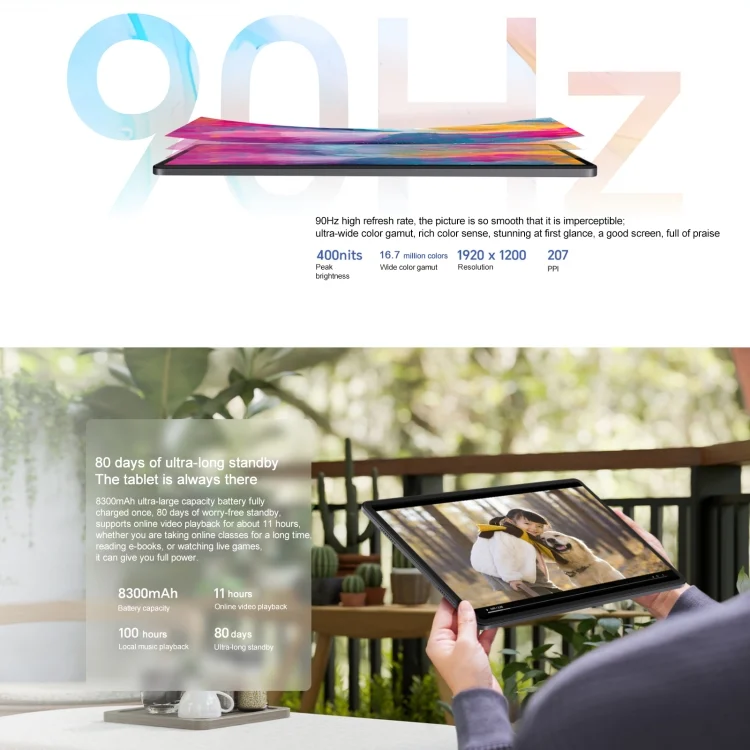 3. Display: 11 inch LCD 90Hz high refresh rate large screen, 1920×1200 pixel resolution, 207 PPI, 84% screen to body ratio