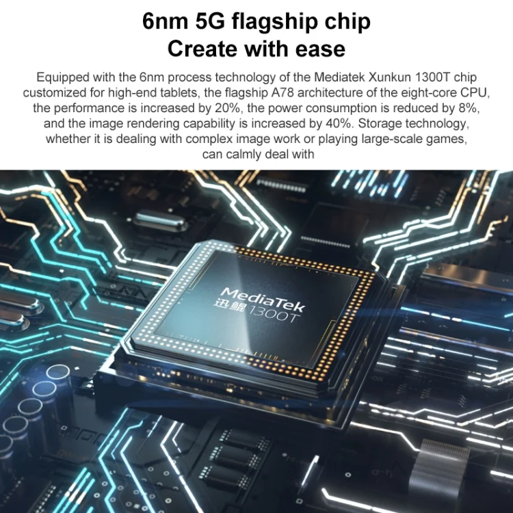1. MediaTek 1300T octa core CPU, combine with 8GB+128GB memory, fast run and smoothly operate.
