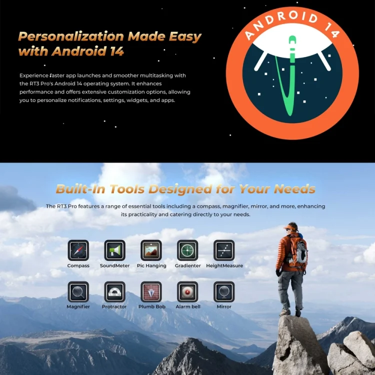 OUKITEL RT3 Pro 4G Network IP68/IP69K Rugged Tablet, 4GB+128GB, 8.0 inch Android 14 MediaTek G81 Octa-Core Support Dual SIM, EU Plug