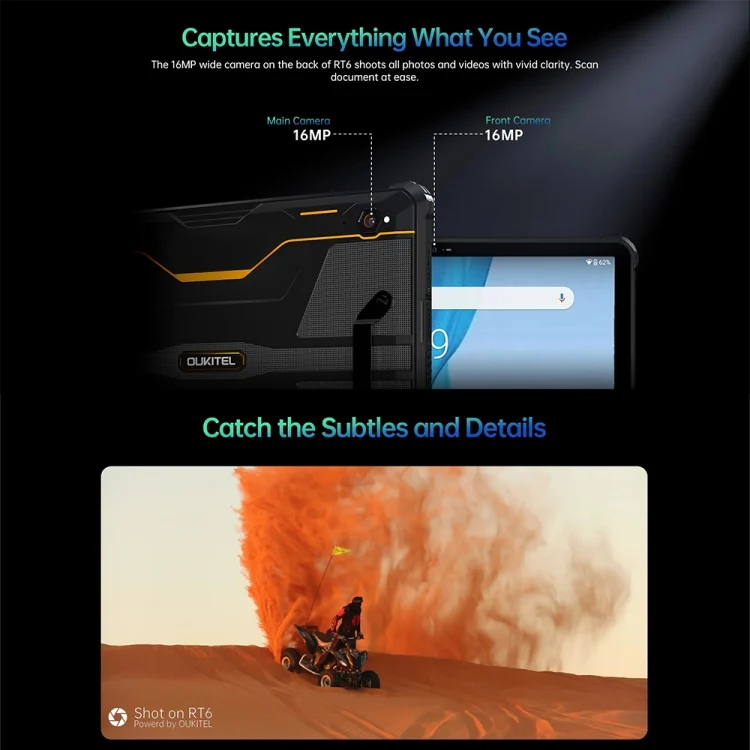 OUKITEL RT6 4G Network IP68/IP69K Rugged Tablet, 10.1 inch Android 13 MediaTek MT8788 Octa Core Support Dual SIM, EU Plug