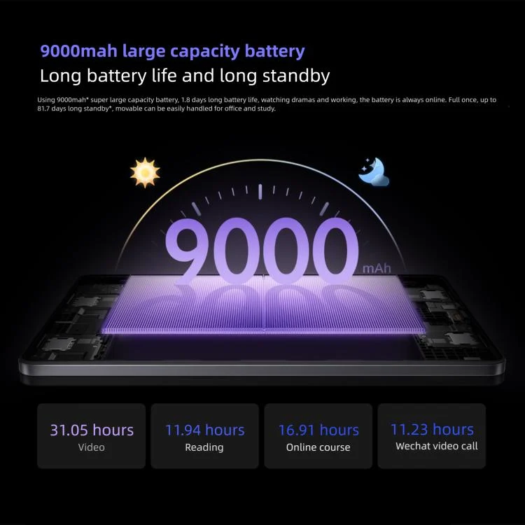 10. Battery capacity: 9000mAh, supports wired charging up to 18W