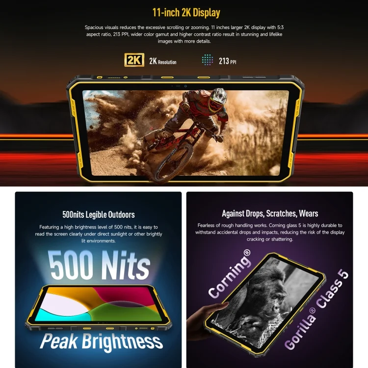 1. Display: 11 inch 1200×2000 FHD+ screen, 213PPI, 500nits brightness