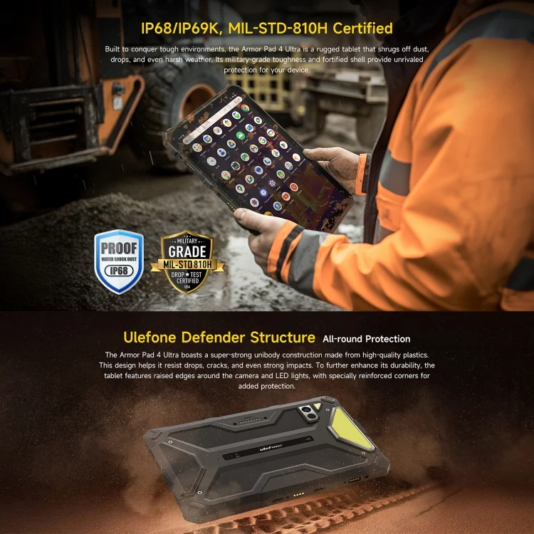 Ulefone Armor Pad 4 Ultra Rugged Tablet PC, 10.36 inch Android 14 MediaTek Dimensity 6300 Octa Core 5G Network, EU Plug