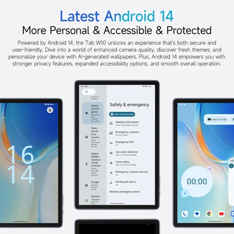 Ulefone Tab W10 WiFi Tablet PC, 10.1 inch Android 14 Unisoc T606 Octa Core, EU Plug