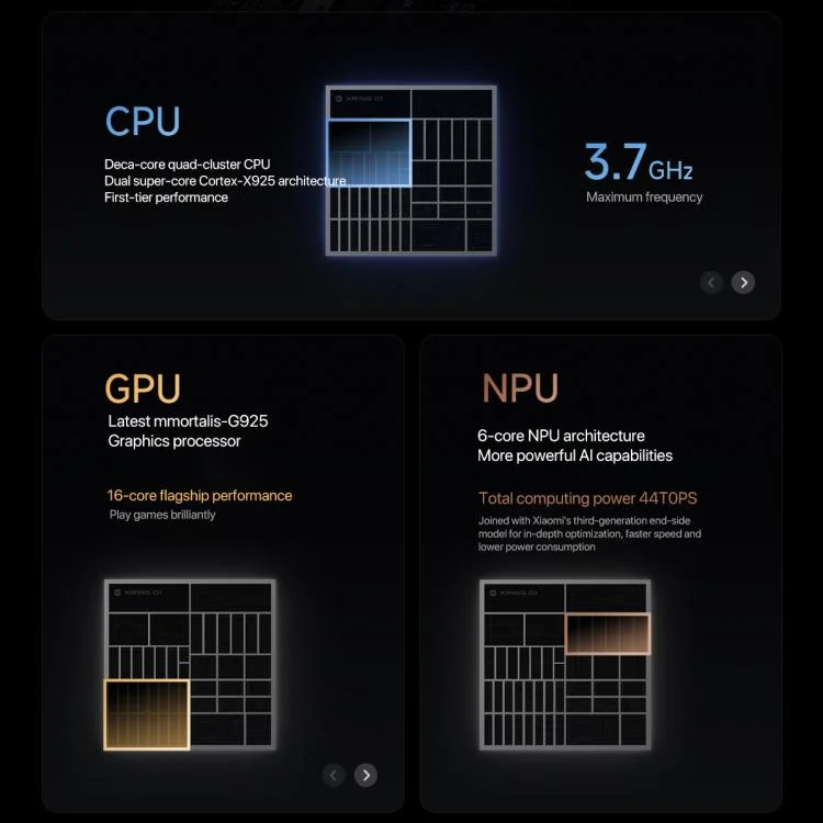 4. CPU: XRING O1 mobile platform Gen2 3nm SOC technology, 10-core processor, up to 3.7GHz